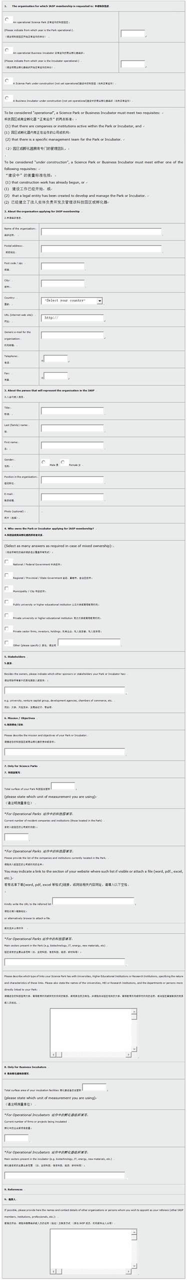 加入国际科技园协会– 中文申请表格 |