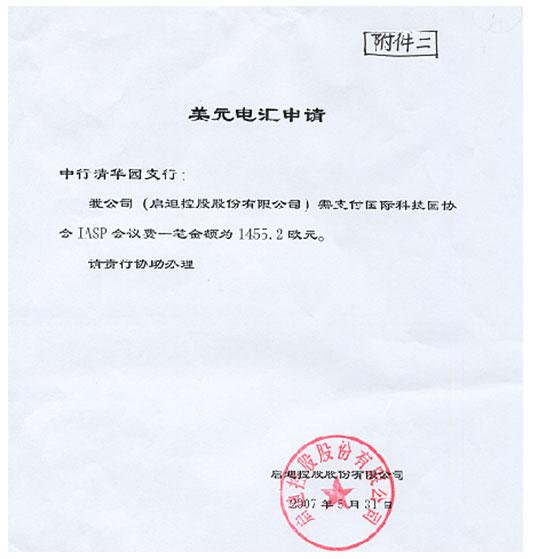 3.提交给银行的所有资料都是需要加盖公章的,包括附件一;而且到银行办理相关汇款手续时需要填一些单据,所以最好让经办人员带上财务章和人名章(在银行的预留印鉴)。
