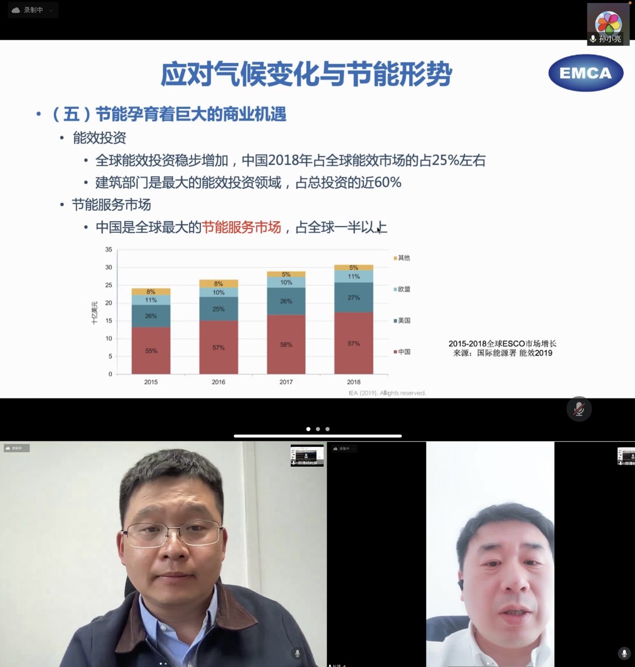 4月14日下午,由国际科技园及创新区域协会(IASP)中国办公室主办、启迪之星协办的第七期IASP中国区会员在线分享会成功举办。会议由IASP中国办公室执行主任杜朋主持,邀请到了中国节能协会节能服务产业委员会常务副主任兼秘书长孙小亮、节能行业的领先企业煦联得节能科技公司技术总监邢清标来与中国的IASP会员/非会员单位代表们进行分享和交流。