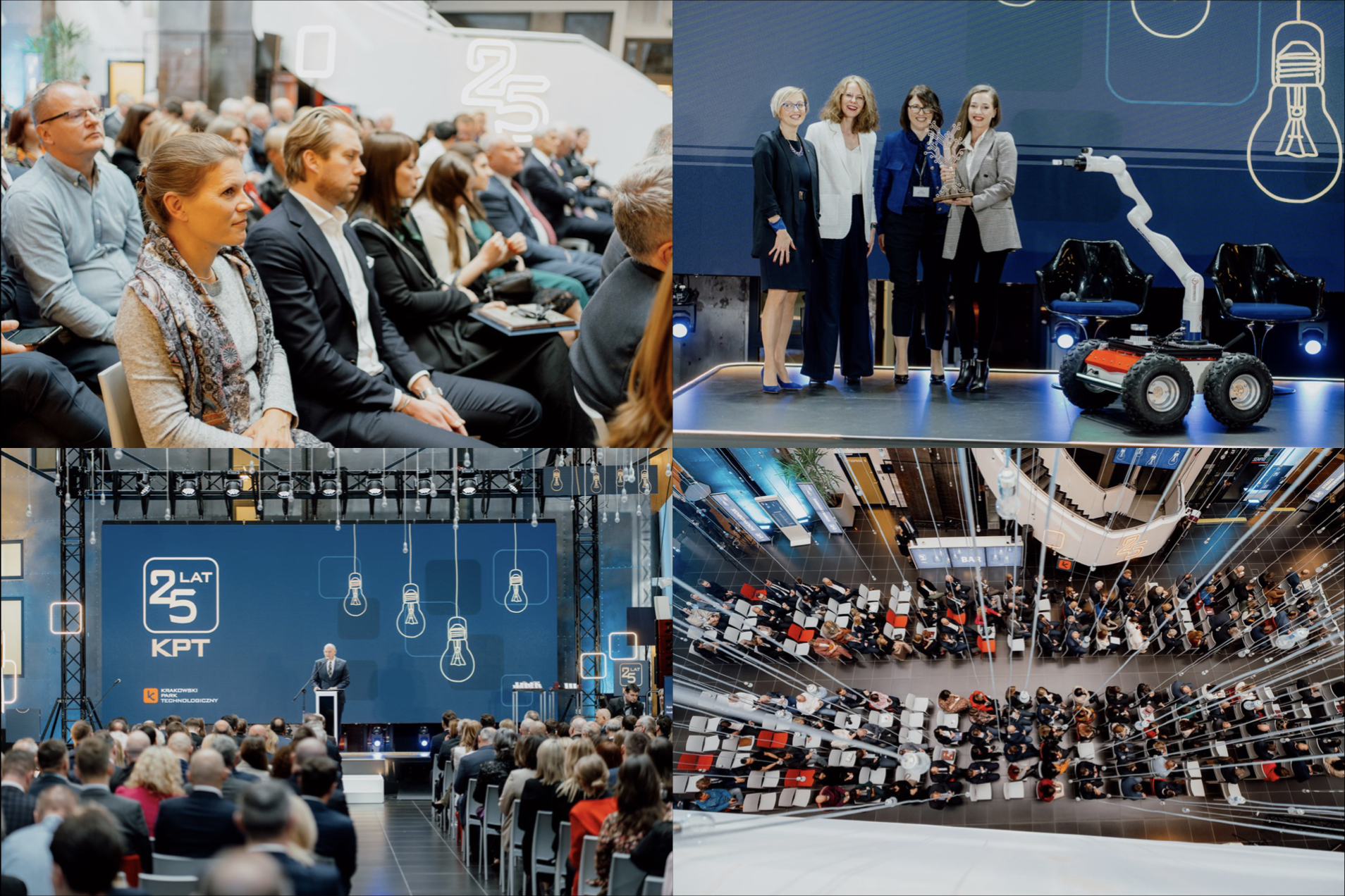 晚会在园区总部举行,庆祝多年来KPT及其入驻企业所取得的成就,并向从KPT生态系统中选出的企业颁发25周年奖:小波兰创新与投资金树雕像。